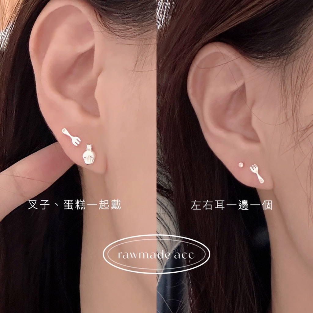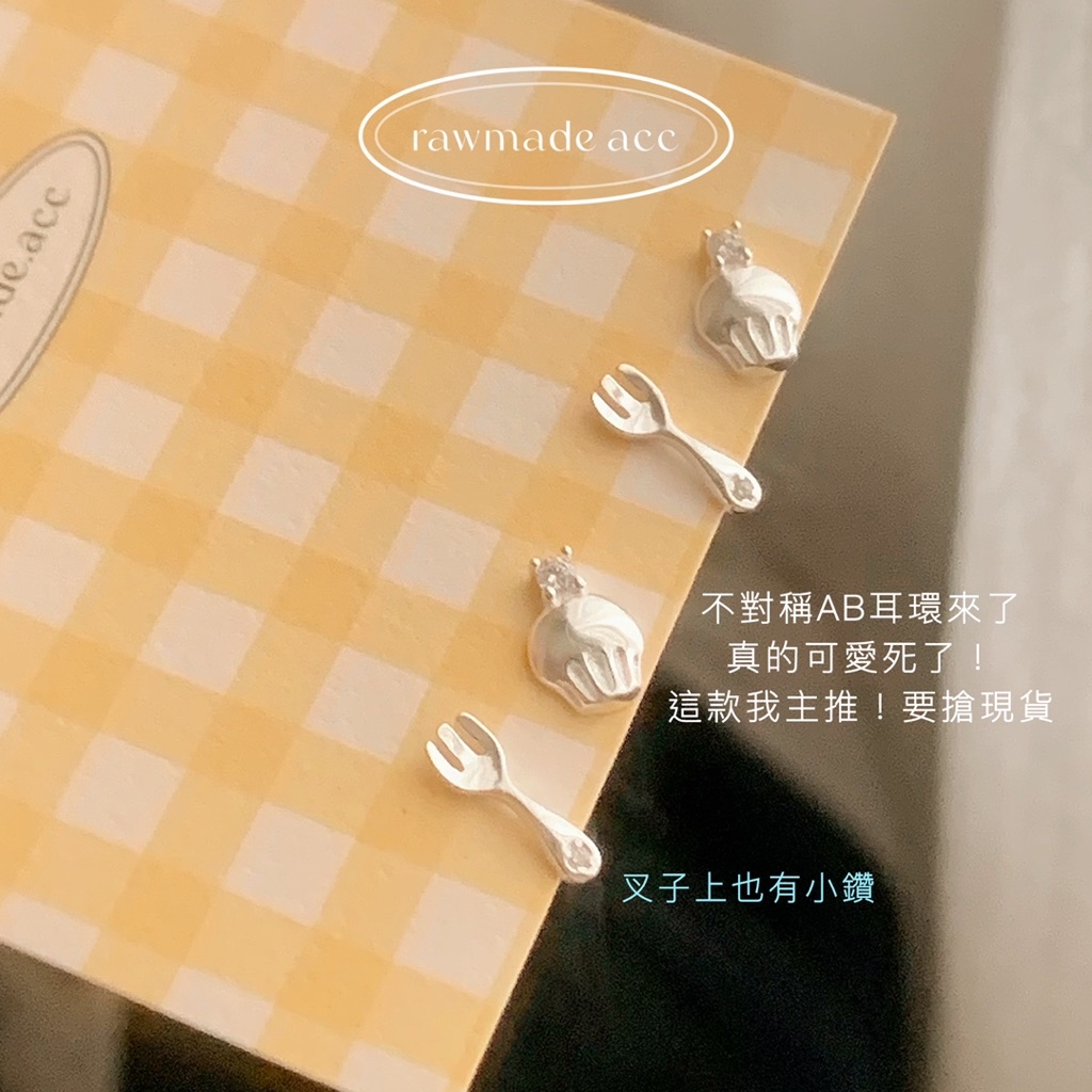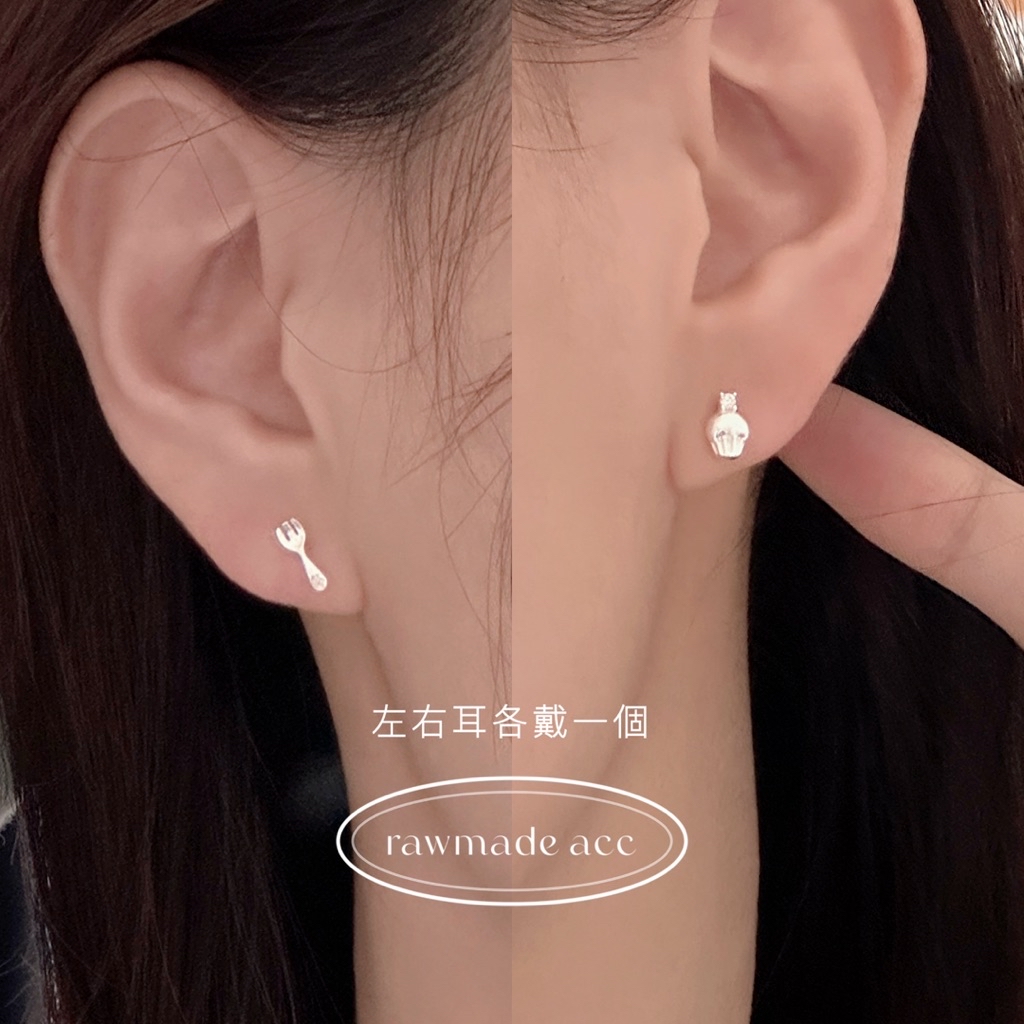 (新品首日快閃價)【瘋了😻不對稱耳環來了】Raw-made🏷 5A鋯石 純銀 叉子 蛋糕 鯊魚 單鑽 耳環 耳釘 韓國