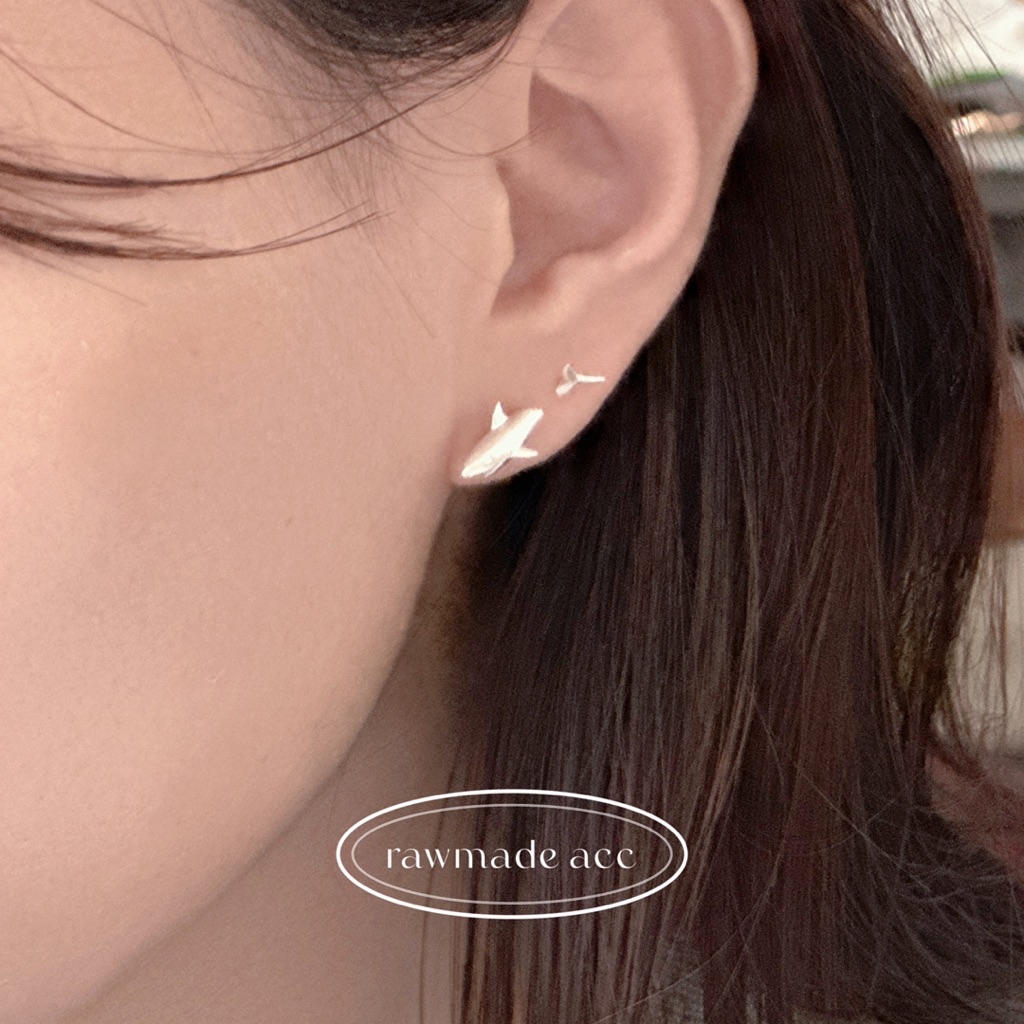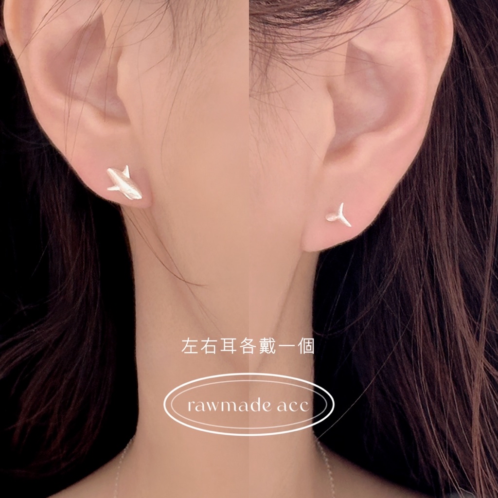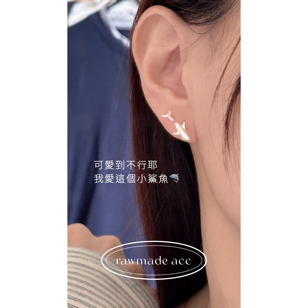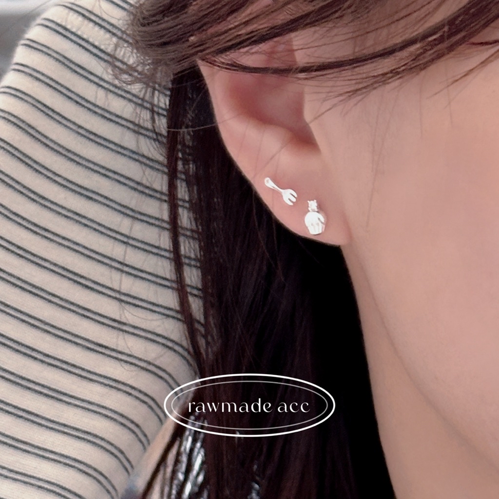 (新品首日快閃價)【瘋了😻不對稱耳環來了】Raw-made🏷 5A鋯石 純銀 叉子 蛋糕 鯊魚 單鑽 耳環 耳釘 韓國